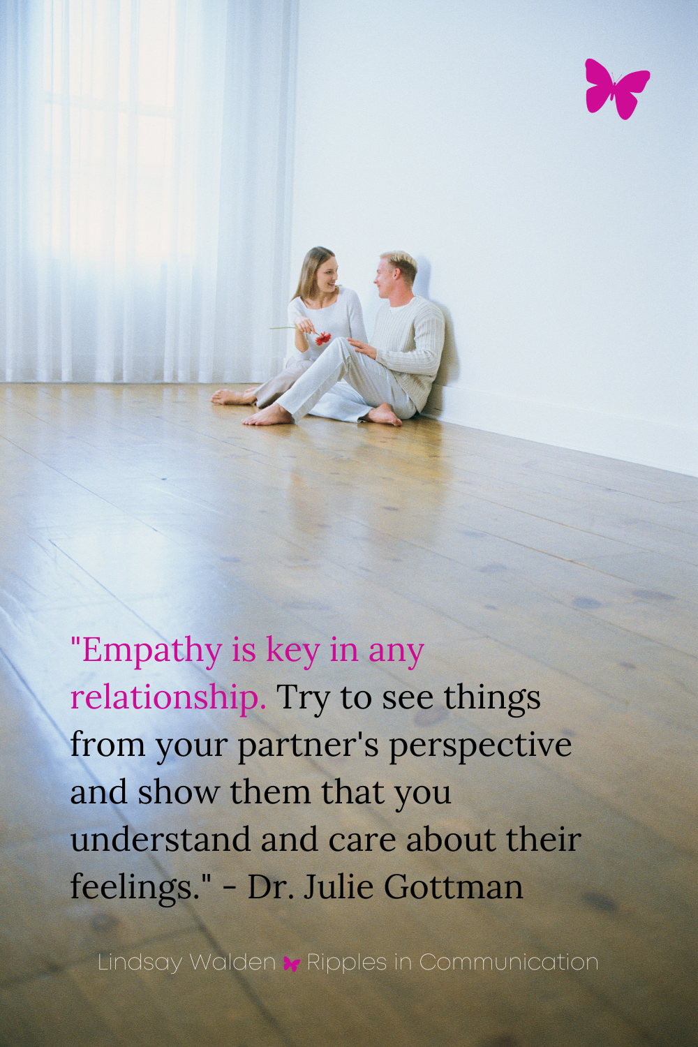 "Empathy is key in any relationship. Try to see things from your partner's perspective and show them that you understand and care about their feelings." - Dr. Julie Gottman