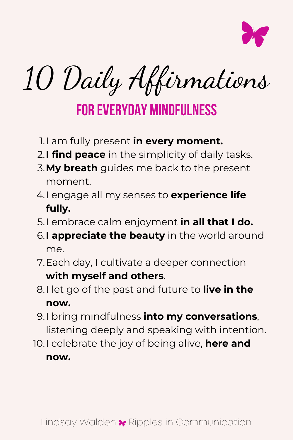 Elevate your daily routine with these 10 affirmations for everyday mindfulness, designed to bring you into the present and enrich your life with joy and connection.