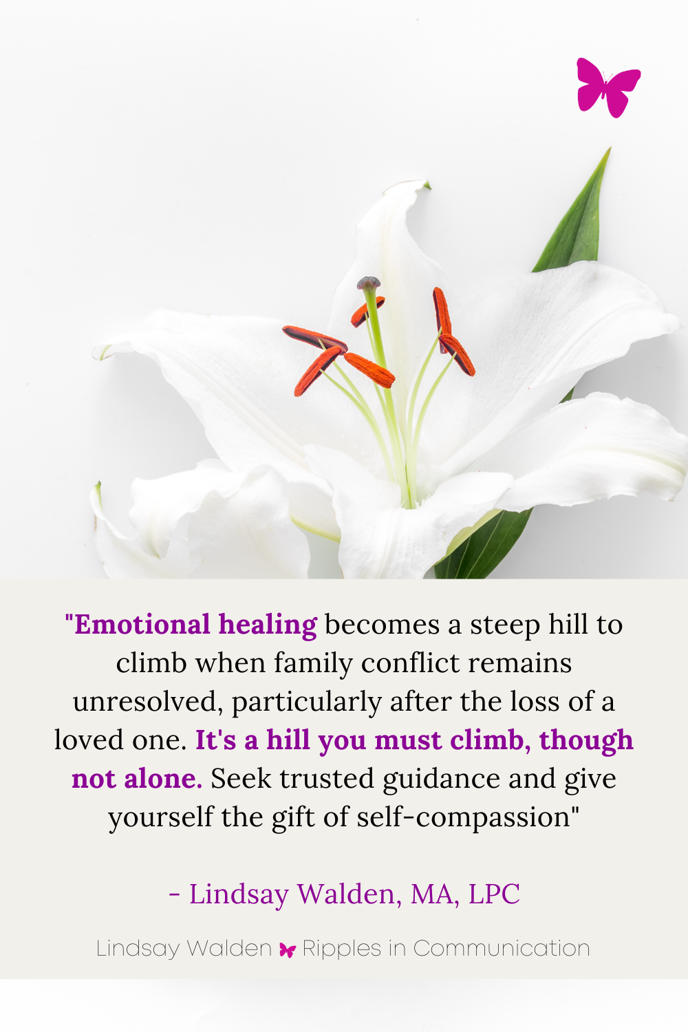Family dynamics are complex. They weave through our life journey with experiences of joy, sorrow, and sometimes unresolved issues. At the heart of such intricacies often lies the struggle for open conversations and mutual understanding. Emotional healing becomes a steep hill to climb when a family conflict remains unresolved, particularly after the loss of a loved one. We carry the weight of guilt, grief, and a plethora of emotions that seem to have no outlet. This burden can be heavier if those feelings – anger, sadness, guilt – stem from issues that we never had the chance to resolve with the departed. Emotional wellness, therefore, demands that we navigate through these layers of grief and self-reflection, finding a way to let go, move forward, and eventually attain catharsis. It is a personal journey of growth, one that requires courage but leads to a stronger, healthier relationship with oneself and those around us.