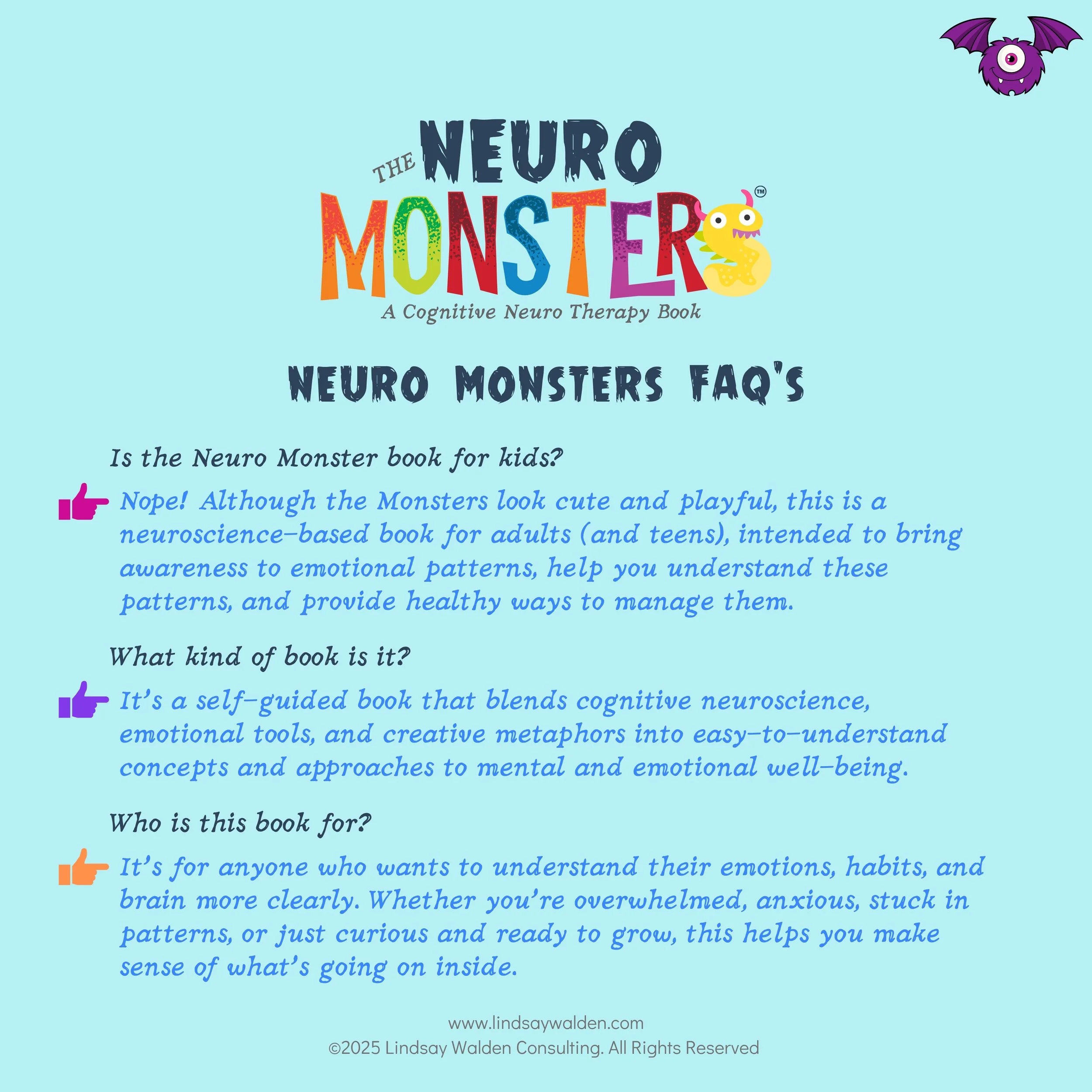 This book takes you on a journey through 81 Neuro Monsters, the creatures shaping your anxiety, perfectionism, shutdowns, spirals, sudden cravings, etc. They’re real patterns in your nervous system. They’re not bad, they’re misunderstood, but they can be trained!